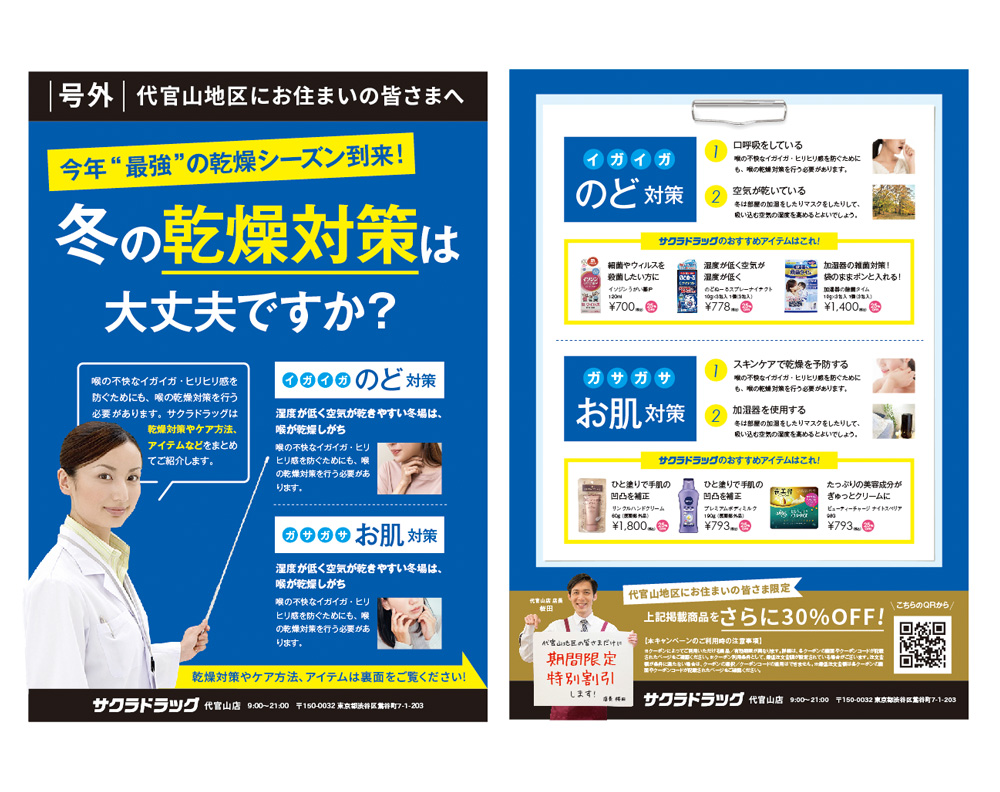WORKS-life01 2024.04.11 メイク・コスメ雑貨店 DM スーパー01 チラシ(三つ折りタイプ) スーパー02 チラシ ドラッグストア01 チラシ ※作品内の情報はすべて架空の情報です。